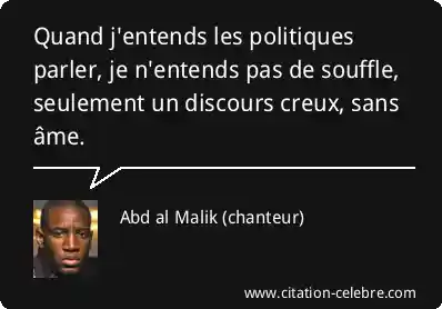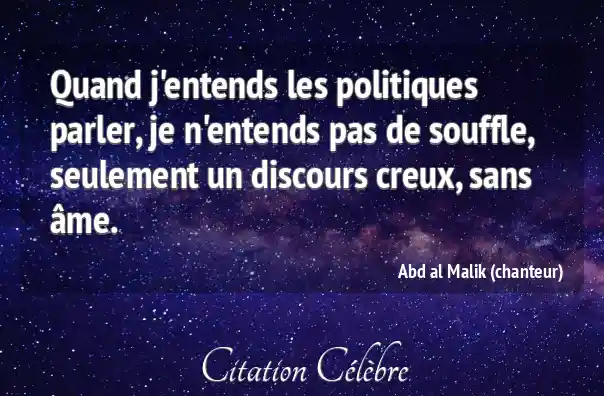 Quand j'entends les politiques parler, je n'entends pas de souffle, seulement un discours creux, sans âme.