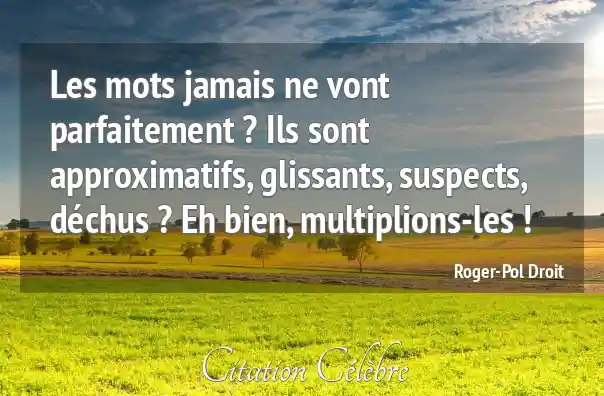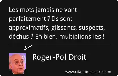 Citation Roger-Pol Droit bien : Les mots jamais ne vont parfaitement ? Ils sont approximatifs,...