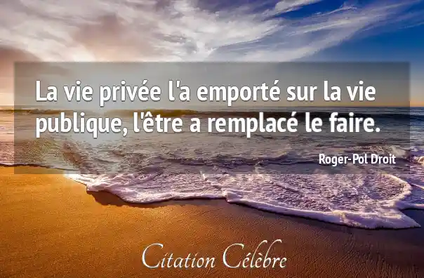 La vie privée l'a emporté sur la vie publique, l'être a remplacé le faire.