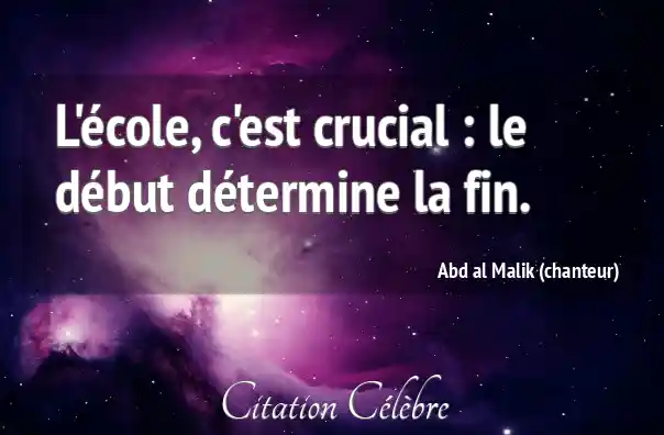 L'école, c'est crucial : le début détermine la fin.