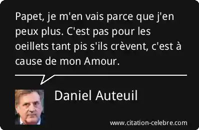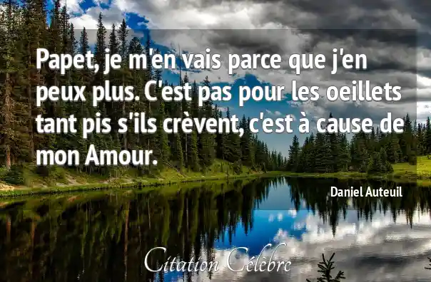 Papet, je m'en vais parce que j'en peux plus. C'est pas pour les oeillets tant pis s'ils crèvent, c'est à cause de mon Amour.