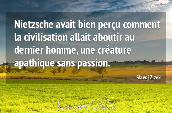 Nietzsche avait bien perçu comment la civilisation allait aboutir au dernier homme, une créature apathique sans passion.