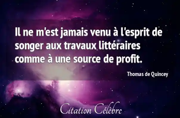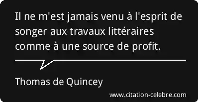 Il ne m'est jamais venu à l'esprit de songer aux travaux littéraires comme à une source de profit.