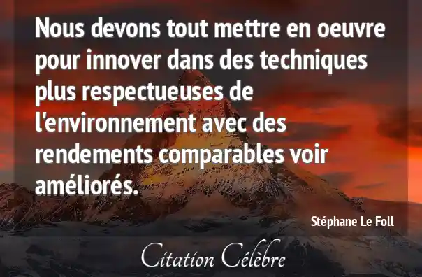 Nous devons tout mettre en oeuvre pour innover dans des techniques plus respectueuses de l'environnement avec des rendements comparables voir améliorés.
