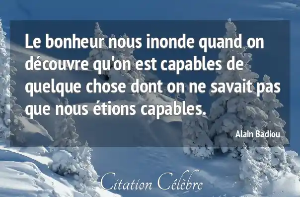 Le bonheur nous inonde quand on découvre qu'on est capables de quelque chose dont on ne savait pas que nous étions capables.