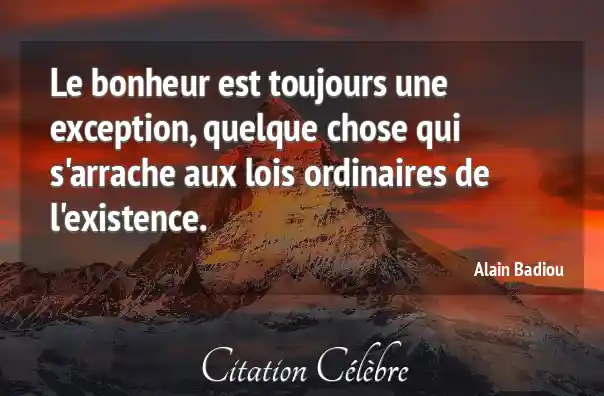 Le bonheur est toujours une exception, quelque chose qui s'arrache aux lois ordinaires de l'existence.