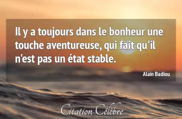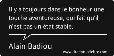 Il y a toujours dans le bonheur une touche aventureuse, qui fait qu'il n'est pas un état stable.