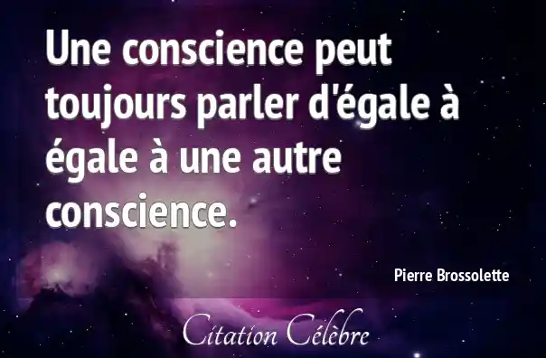 Une conscience peut toujours parler d'égale à égale à une autre conscience.