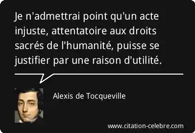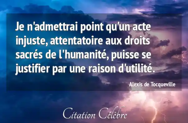 Je n'admettrai point qu'un acte injuste, attentatoire aux droits sacrés de l'humanité, puisse se justifier par une raison d'utilité.
