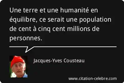 Une terre et une humanité en équilibre, ce serait une population de cent à cinq cent millions de personnes.