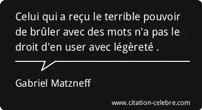 Celui qui a reçu le terrible pouvoir de brûler avec des mots n'a pas le droit d'en user avec légèreté .