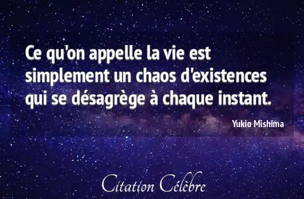 Ce qu'on appelle la vie est simplement un chaos d'existences qui se désagrège à chaque instant.