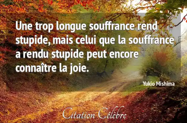 Une trop longue souffrance rend stupide, mais celui que la souffrance a rendu stupide peut encore connaître la joie.