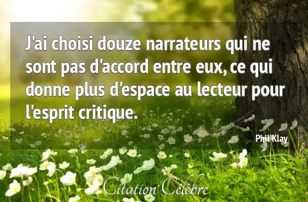 J'ai choisi douze narrateurs qui ne sont pas d'accord entre eux, ce qui donne plus d'espace au lecteur pour l'esprit critique.