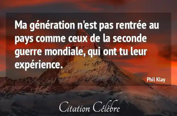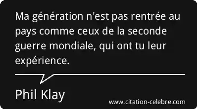 Ma génération n'est pas rentrée au pays comme ceux de la seconde guerre mondiale, qui ont tu leur expérience.