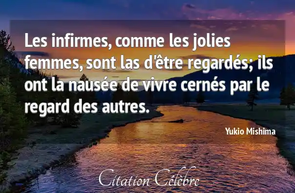 Les infirmes, comme les jolies femmes, sont las d'être regardés; ils ont la nausée de vivre cernés par le regard des autres.