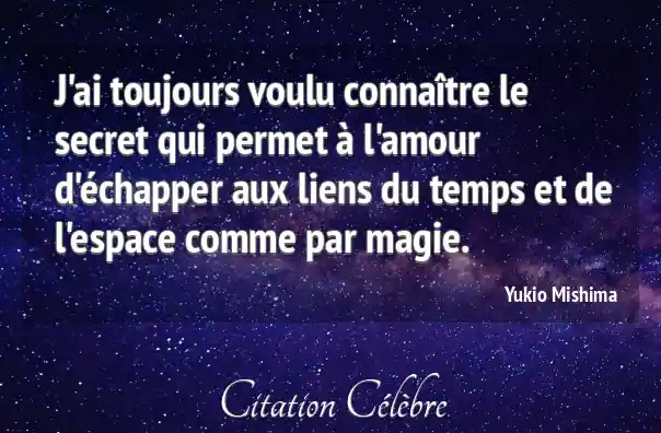 J'ai toujours voulu connaître le secret qui permet à l'amour d'échapper aux liens du temps et de l'espace comme par magie.