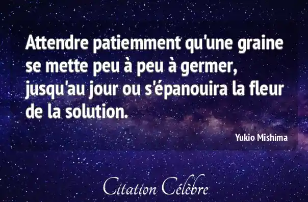 Attendre patiemment qu'une graine se mette peu à peu à germer, jusqu'au jour ou s'épanouira la fleur de la solution.