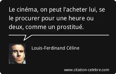 Citation Louis-Ferdinand Céline lui : Le cinéma, on peut l'acheter lui, se le procurer pour...
