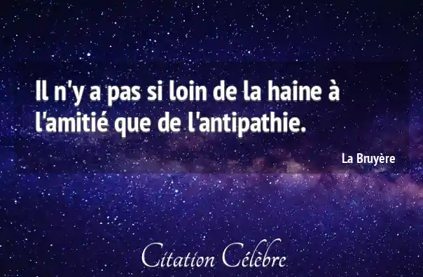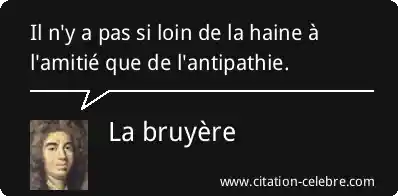 Il n'y a pas si loin de la haine à l'amitié que de l'antipathie.