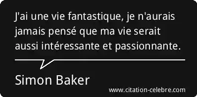 J'ai une vie fantastique, je n'aurais jamais pensé que ma vie serait aussi intéressante et passionnante.