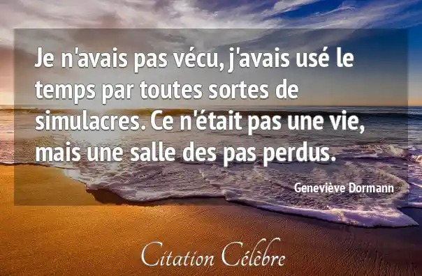 Je n'avais pas vécu, j'avais usé le temps par toutes sortes de simulacres. Ce n'était pas une vie, mais une salle des pas perdus.