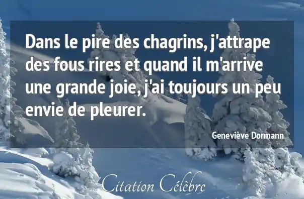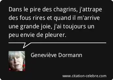 Dans le pire des chagrins, j'attrape des fous rires et quand il m'arrive une grande joie, j'ai toujours un peu envie de pleurer.