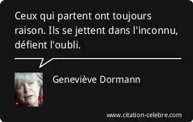 Ceux qui partent ont toujours raison. Ils se jettent dans l'inconnu, défient l'oubli.