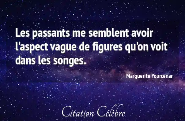 Les passants me semblent avoir l'aspect vague de figures qu'on voit dans les songes.
