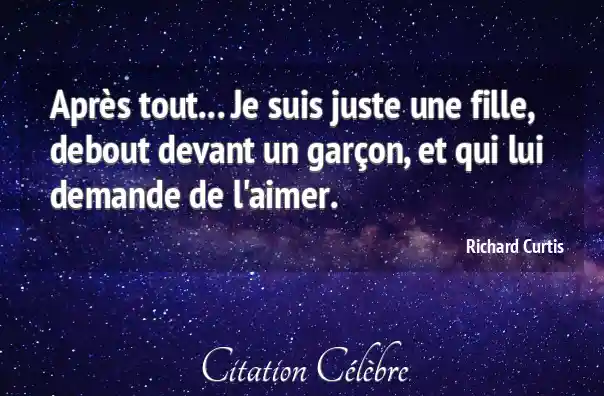 Après tout... Je suis juste une fille, debout devant un garçon, et qui lui demande de l'aimer.