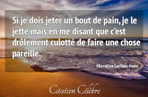 Si je dois jeter un bout de pain, je le jette mais en me disant que c'est drôlement culotté de faire une chose pareille.
