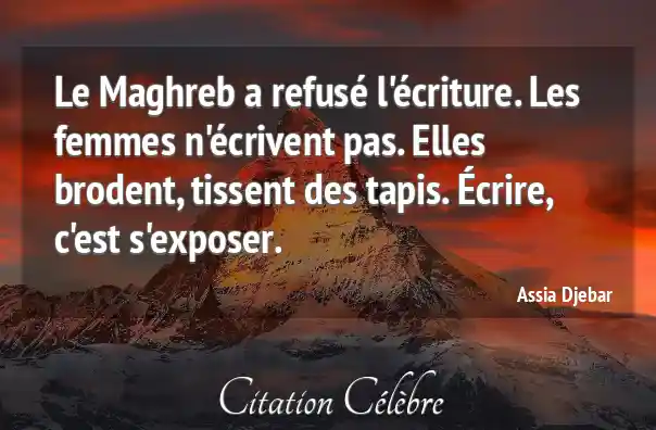 Le Maghreb a refusé l'écriture. Les femmes n'écrivent pas. Elles brodent, tissent des tapis. Écrire, c'est s'exposer.