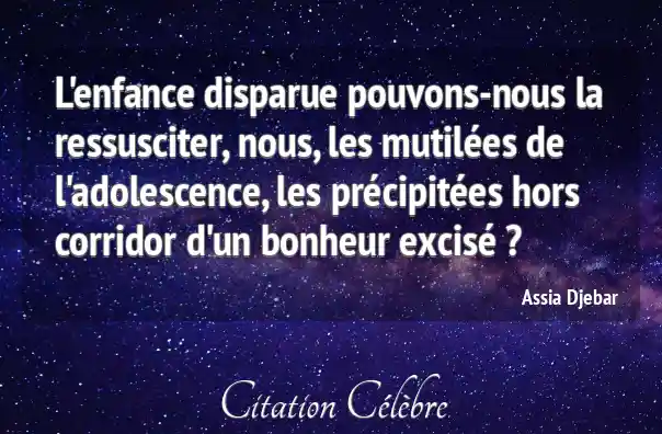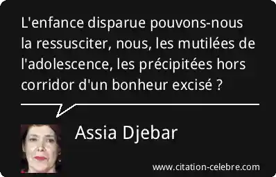 L'enfance disparue pouvons-nous la ressusciter, nous, les mutilées de l'adolescence, les précipitées hors corridor d'un bonheur excisé ?