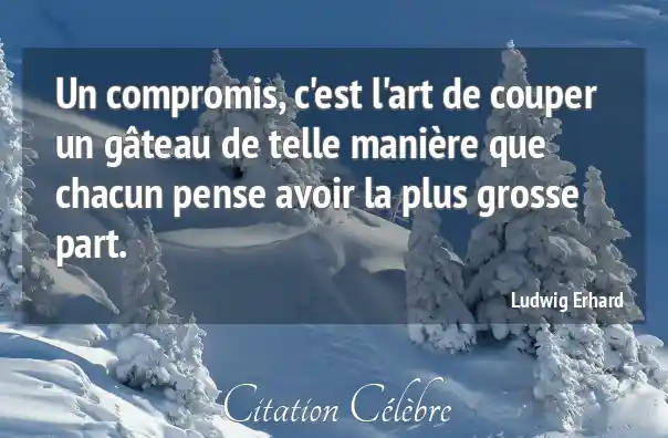 Un compromis, c'est l'art de couper un gâteau de telle manière que chacun pense avoir la plus grosse part.