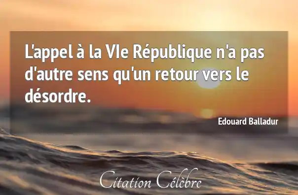 L'appel à la VIe République n'a pas d'autre sens qu'un retour vers le désordre.