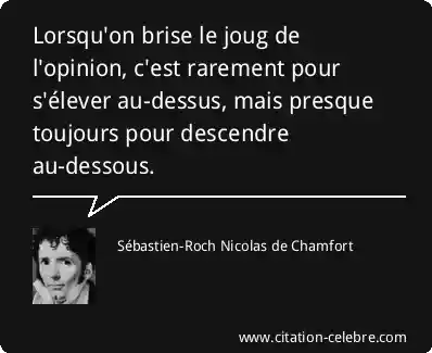 Lorsqu'on brise le joug de l'opinion, c'est rarement pour s'élever au-dessus, mais presque toujours pour descendre au-dessous.