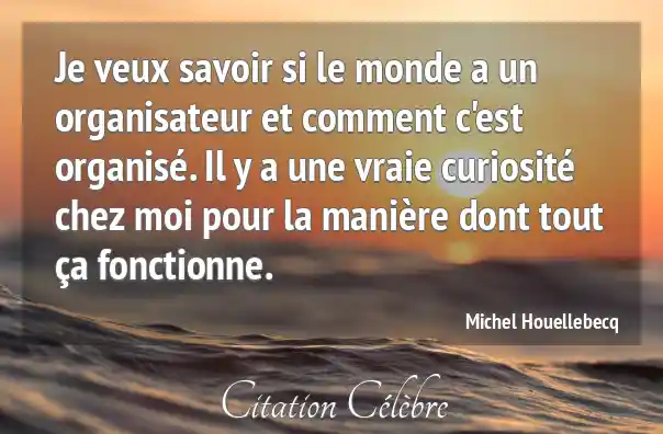 Je veux savoir si le monde a un organisateur et comment c'est organisé. Il y a une vraie curiosité chez moi pour la manière dont tout ça fonctionne.