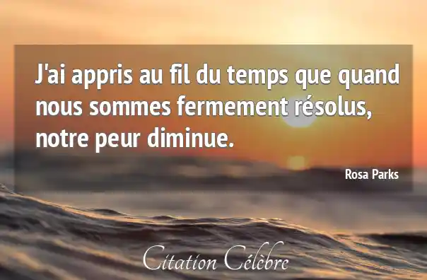 J'ai appris au fil du temps que quand nous sommes fermement résolus, notre peur diminue.