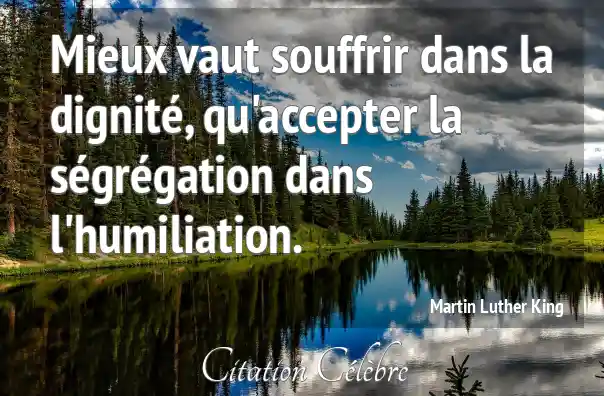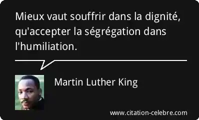 Mieux vaut souffrir dans la dignité, qu'accepter la ségrégation dans l'humiliation.