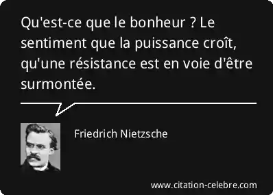 Qu'est-ce que le bonheur ? Le sentiment que la puissance croît, qu'une résistance est en voie d'être surmontée.