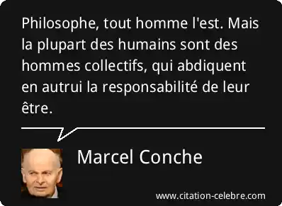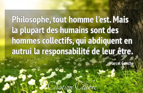 Philosophe, tout homme l'est. Mais la plupart des humains sont des hommes collectifs, qui abdiquent en autrui la responsabilité de leur être.
