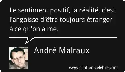 Le sentiment positif, la réalité, c'est l'angoisse d'être toujours étranger à ce qu'on aime.
