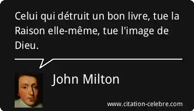 Celui qui détruit un bon livre, tue la Raison elle-même, tue l'image de Dieu.