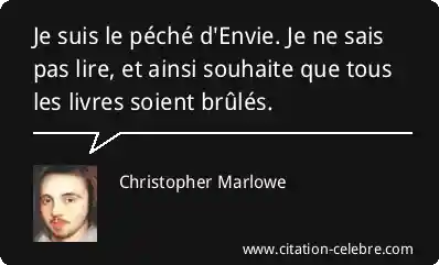 Je suis le péché d'Envie. Je ne sais pas lire, et ainsi souhaite que tous les livres soient brûlés.