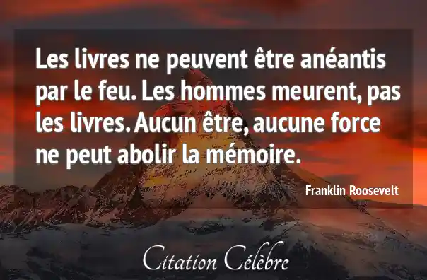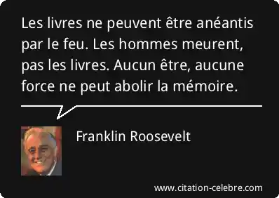 Les livres ne peuvent être anéantis par le feu. Les hommes meurent, pas les livres. Aucun être, aucune force ne peut abolir la mémoire.