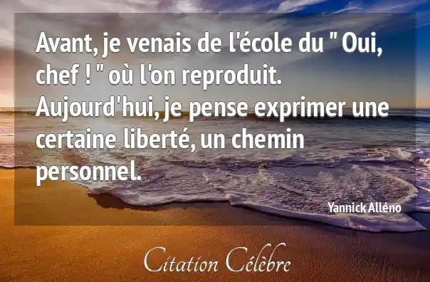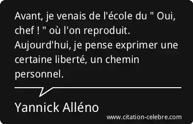 Avant, je venais de l'école du " Oui, chef ! " où l'on reproduit. Aujourd'hui, je pense exprimer une certaine liberté, un chemin personnel.