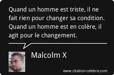 Quand un homme est triste, il ne fait rien pour changer sa condition. Quand un homme est en colère, il agit pour le changement.