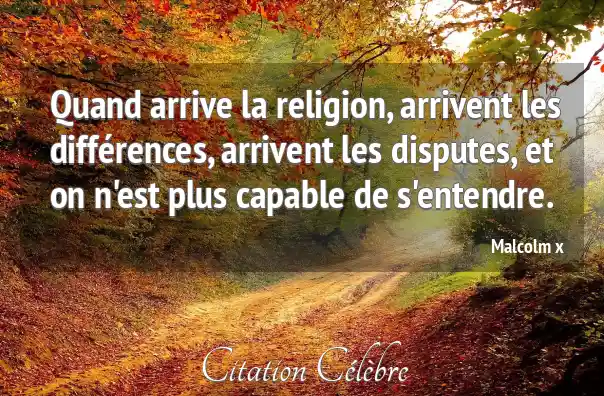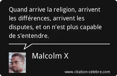 Quand arrive la religion, arrivent les différences, arrivent les disputes, et on n'est plus capable de s'entendre.