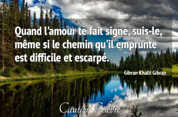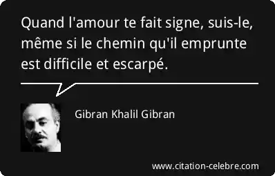 Quand l'amour te fait signe, suis-le, même si le chemin qu'il emprunte est difficile et escarpé.