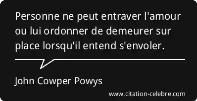 Citation John Cowper Powys amour : Personne ne peut entraver l'amour ou lui ordonner de demeurer...